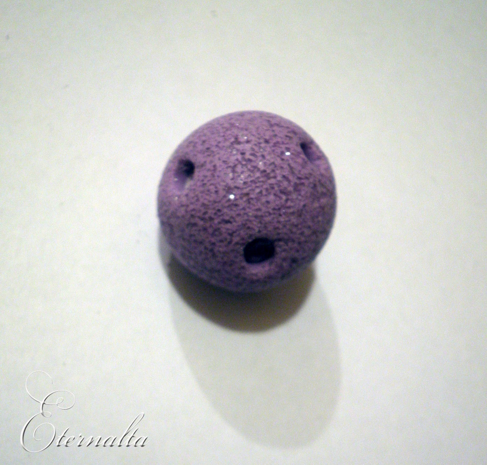 Самое время украсить поверхность нашей будущей бусины, я выполнила этот этап в сахарной (солевой) технике. Делается это просто - высыпаете на ладонь чайную ложку сахара/соли (в зависимости от того, какой по зернистости узор вам нужен), обмакиваем теплую бусину в этот песок и равномерно распределяем его по поверхности, раскатывая в ладонях. Получится вот так: