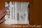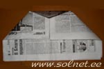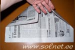 2. Разворот газеты складываем пополам. Со стороны сгиба загибаем уголки.
