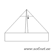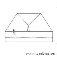 6. Нижний край сгибаем и уголок заправляем под полоску. Верхние углы прямоугольника заправляем вовнутрь.