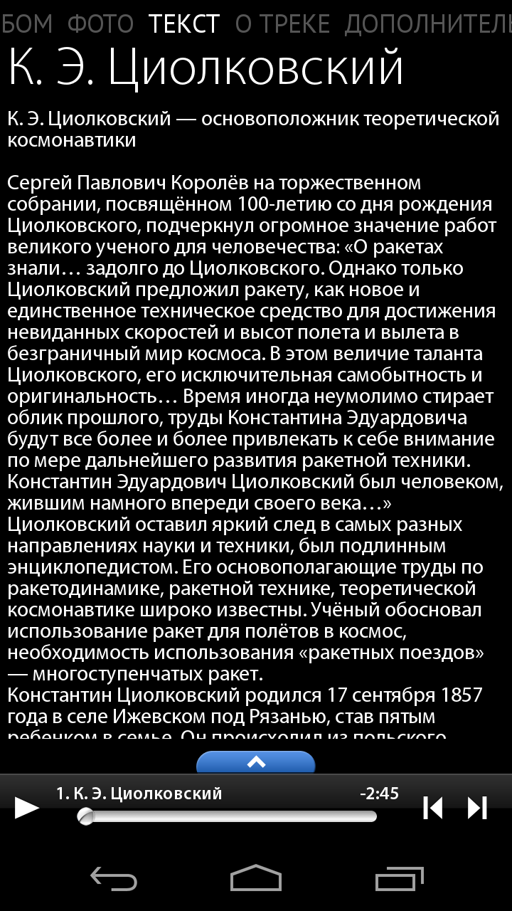 В списке треков, как можно заметить, сначала обозначена та или иная космическая веха, и только потом имя автора (группы, проекта) и название композиции.