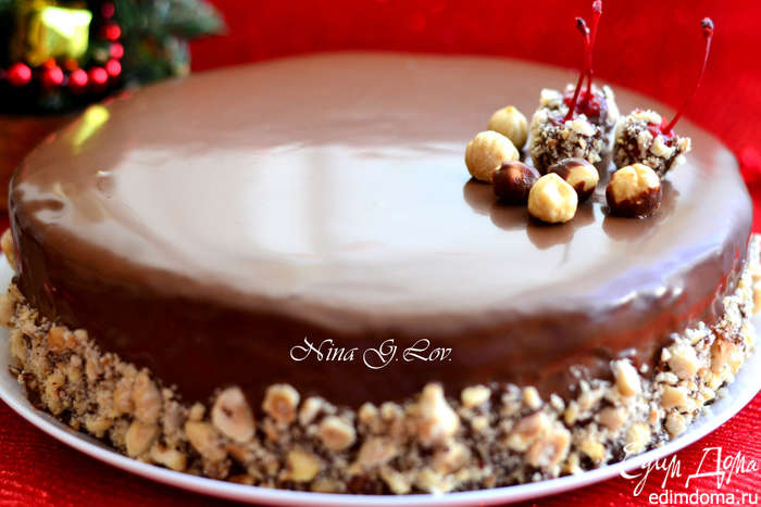 Скоро,совсем уже скоро долгожданные, всеми любимые праздники Новый Год и Рождество! У каждого уже наступили предновогодние хлопоты,кто-то скупается подарками,кто-то сочиняет новогоднее меню,но они ведь такие приятные и радостные! Хочется, чтобы в Новом Году Вас всех сопутствовала удача,всех благ вам! И хочу предложить вам в подарок рождественский, праздничный вариант очень вкусного,мега-шоколадного торта. Рецепт торта, как Вы уже видите по названию, я взяла у Фаркоса Вилмоса, он совсем новый, как же я долго ждала его шедевры. Хоть пошаговых получилось много, но торт совсем не сложный, я его приготовила за пару часов. Вкуснейший фундучный дакуаз, нежнейший мусс из молочного шоколада с добавлением арахисовой пасты, сливок и маскарпоне, действительно похоже на конфетки Ферреро.