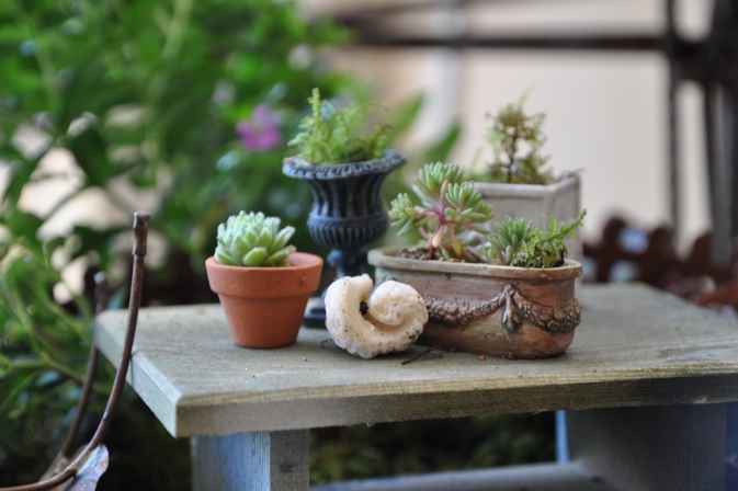 В последнее время все большей популярностью пользуется искусство создания мини-садиков из карликовых растений, камней и миниатюрной мебели.