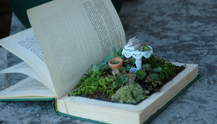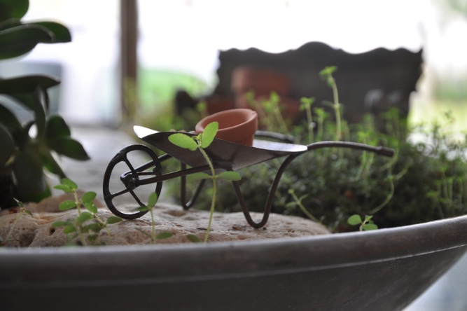 - "тара" для посадки (может быть абсолютно все, как обычные цветочные горшки и кашпо, так и кухонная и домашняя утварь, деревянные и металлические ящики, садовые тележки и даже книги! да-да - смотрите дальше)