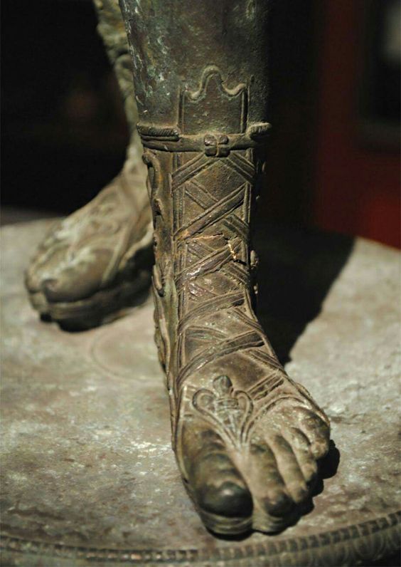 Обувь делилась на сандалии (лат. soleae, sandalia), ботинки (лат. calcei) и сапоги (лат. caligae). В конце 20 века в моду вошли сандалии-гладиаторы, созданные на основе обуви римских легионеров. И по сей день Италия лидирует в производстве обуви.