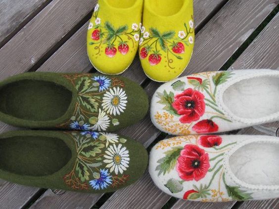 Напоследок - валяные тапочки, удобные, мягкие, чудесные. Впервые я увидела эту прелесть в Таллине, и тогда считалось, что это традиция народов Прибалтики. Но потом оказалось, что у нас тоже уже делают не только валенки, но и всякую другую валяную обувь, и мода эта так распространилась, что теперь уже непонятно с чего всё началось.