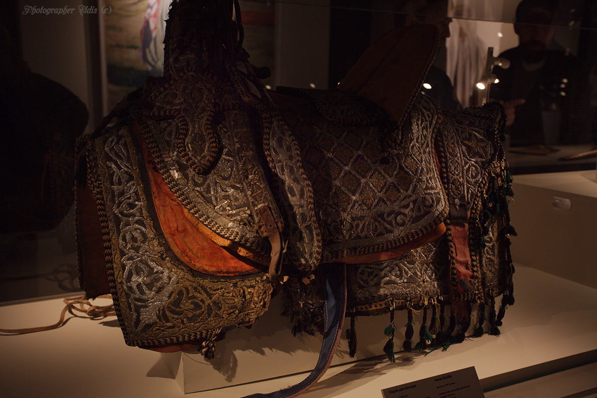 Испокон веков люди считали самыми ценными сокровищами такие вещи, как книги, оружие, женские украшения (золото, серебро, жемчуг, алмазы, рубины, бирюзу...), соколов, лошадей (на выставке можно увидеть сёдла), шёлк, благовонные масла и курительные смеси... Восток до сих пор знает толк в этом!