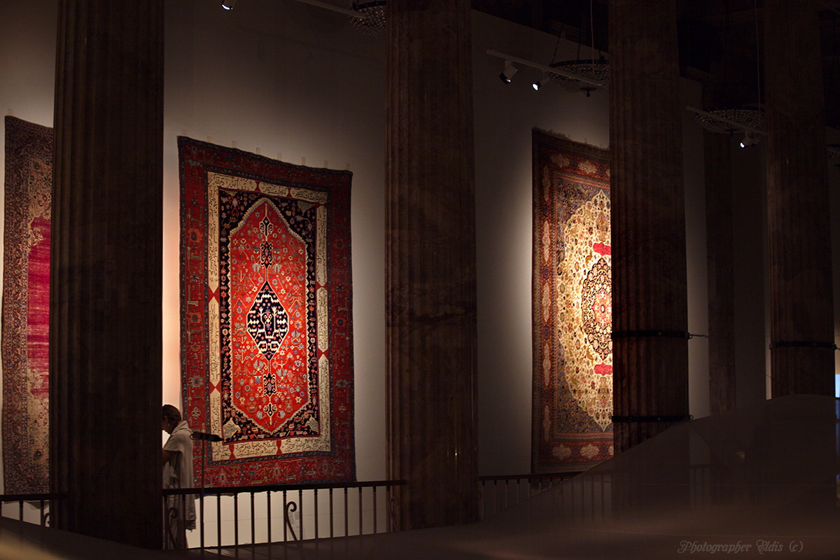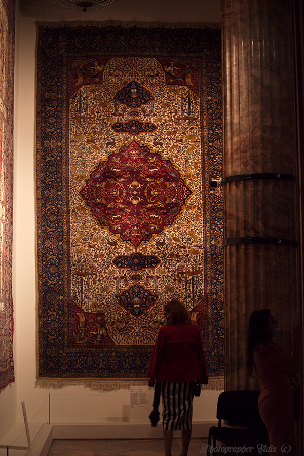 Вид на галерею с коврами... На 3й фото - ковёр, Кошан, 19 век, шерсть.