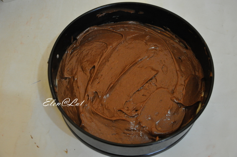 Поставьте форму с тестом в разогретую до 180С духовку примерно на 40 минут. Готовность проверяйте шпажкой. Тесто очень нежное и может сразу показаться, что пирог не готов, но если шпажка сухая, но все доставайте пирог из духовки и слегка остудив, снимите бортики и дайте полностью остыть.