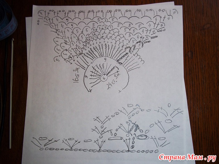 Уже нижние мотивы связаны,они больше из-за перемены крючка.Верх крючок № 3,низ №3,5.