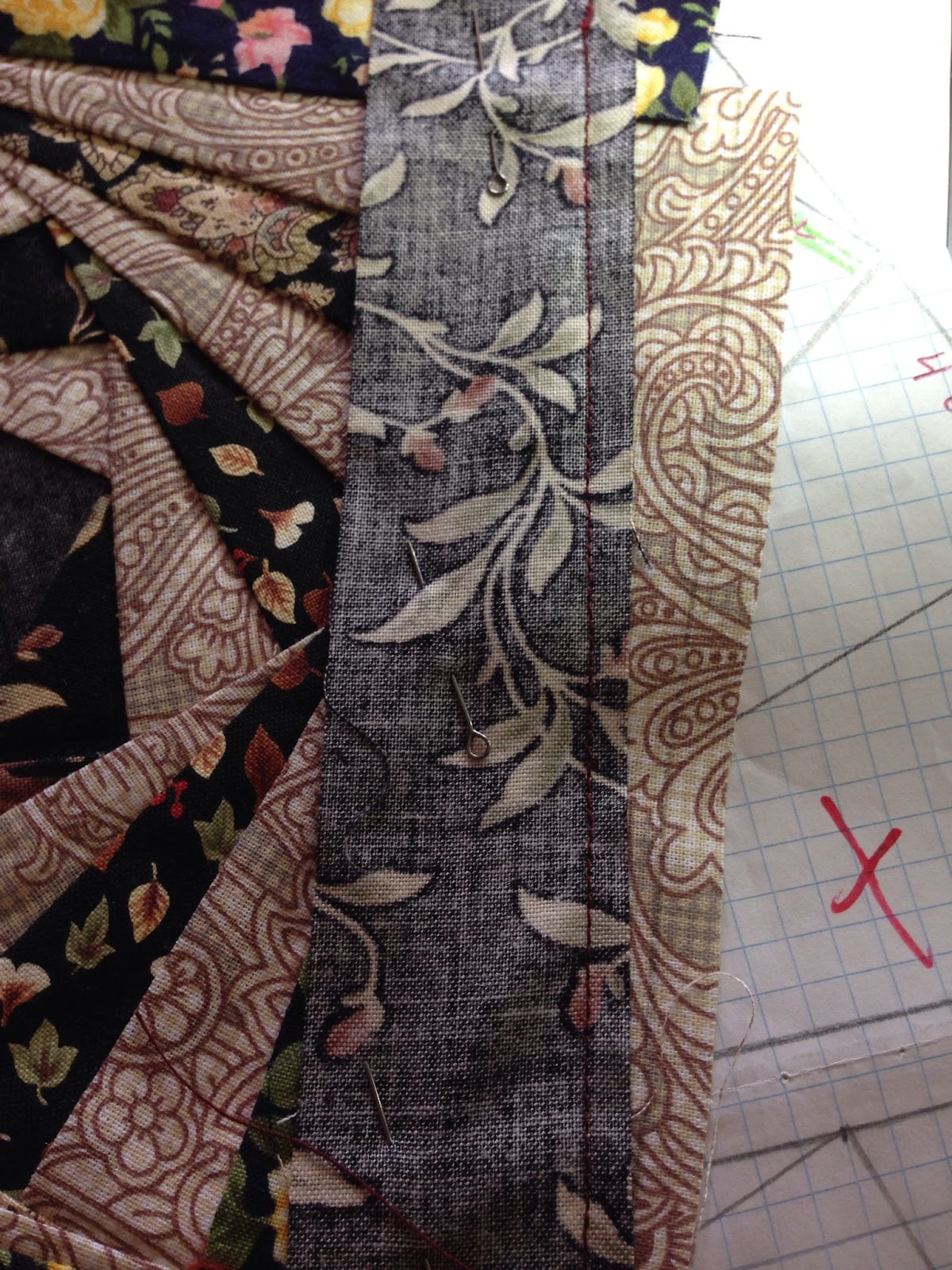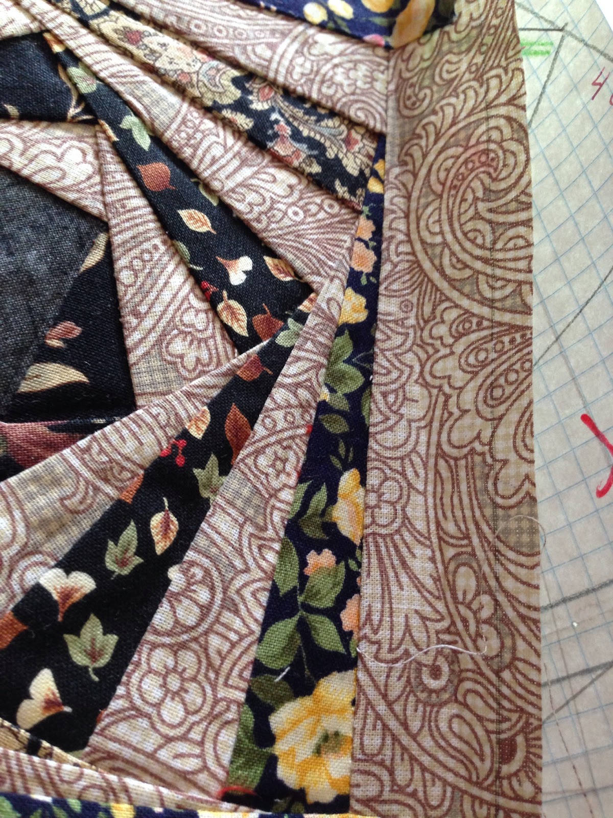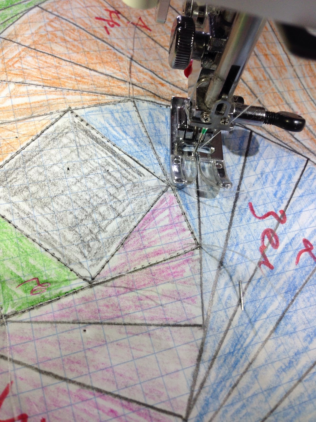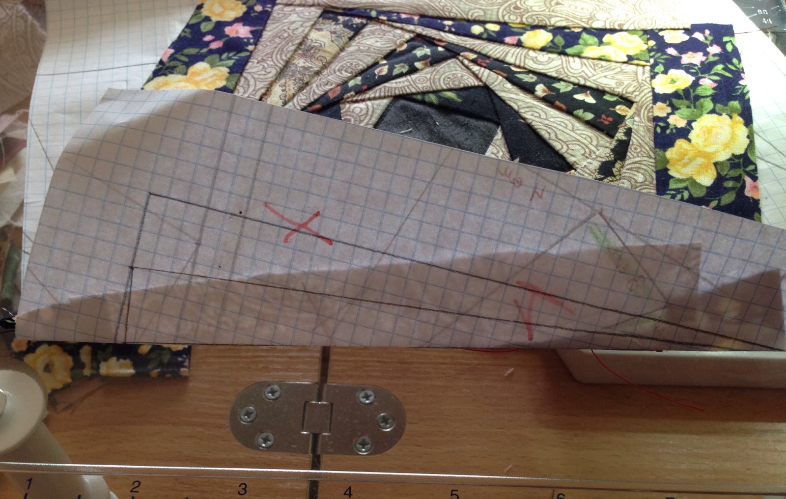 Как шить? А шить надо по бумаге. Блок замысловатый, детали маленькие, углы острые, и точности можно достичь лишь при шитье по бумаге.