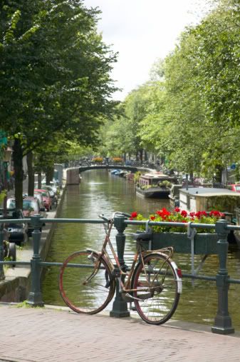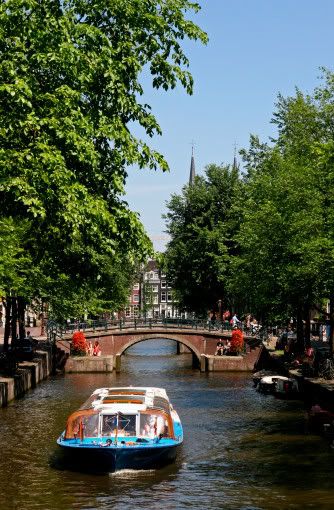 Амстердаму, городу с кукольными домами, велосипедами, тюльпанами, мельницами, а также знаменитыми кафе-шопами и кварталом красных фонарей))