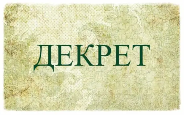 Те, кто еще застал советскую систему образования, помнят со школьной скамьи, что первым декретом Советской власти был разработанный Лениным «Декрет о мире». А еще были декреты «О земле», «Об уничтожении сословий и гражданских чинов» и так далее. Ведь декретами при советской власти называли правовые акты, установленные государством или должностными лицами.