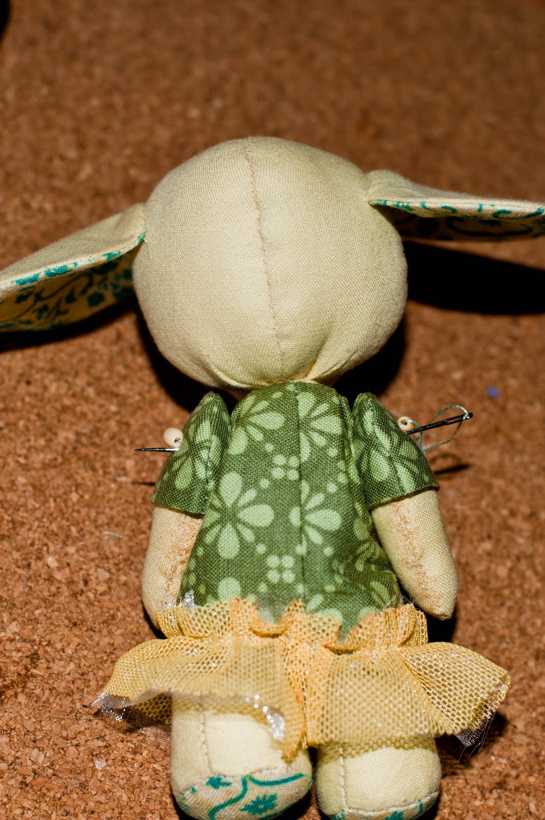 Теперь все это аккуратно прошиваем потайным швом.Я прошивала только складочки, само платье к тельцу не пришивала, так как еще не успела затонировать нашу слоняшку. Вы можете и сразу пришить, если этот этап уже пройден или вам не нужен.