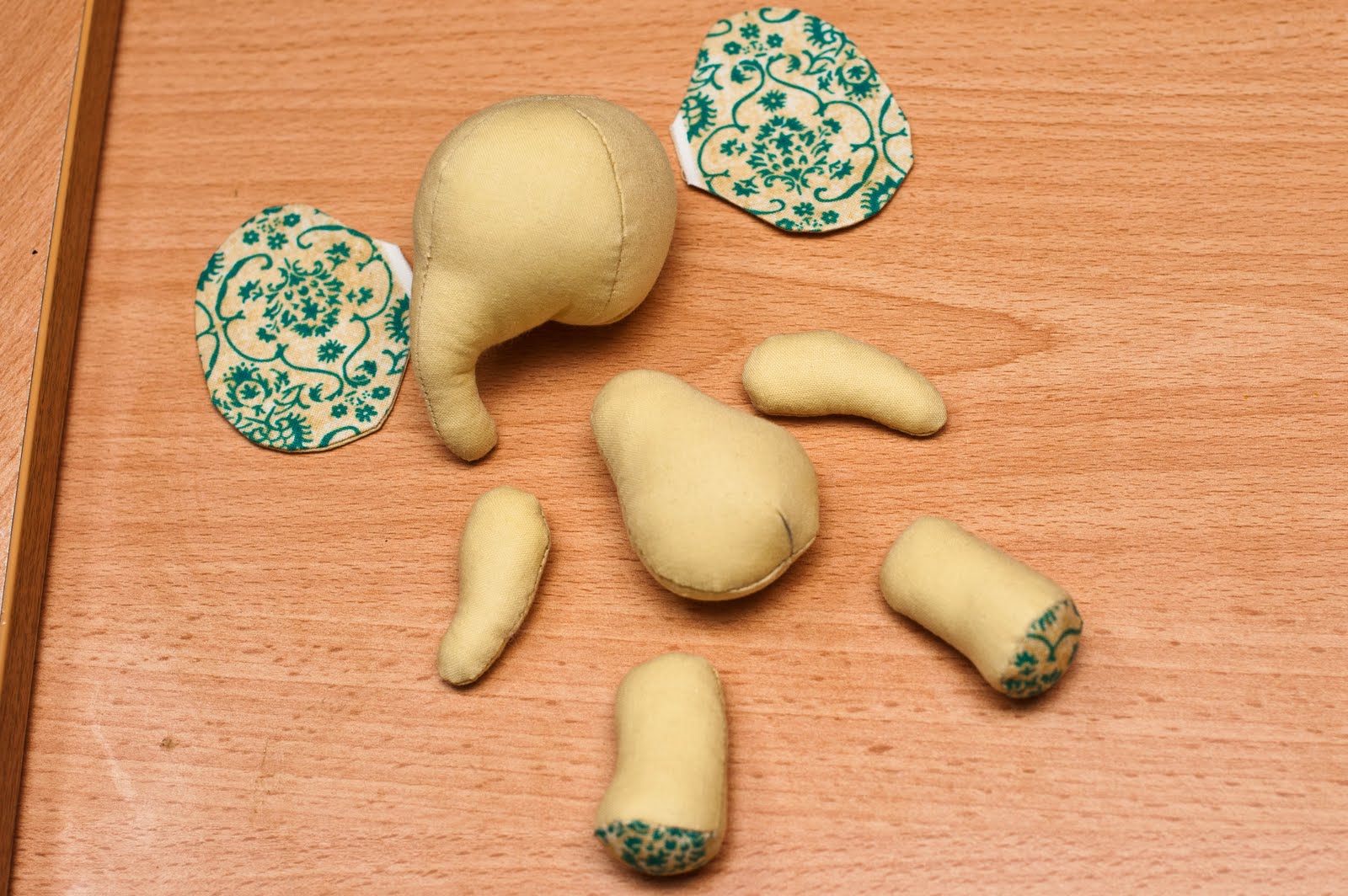 После того, как детальки набиты, аккуратно зашиваем их потайным швом.
