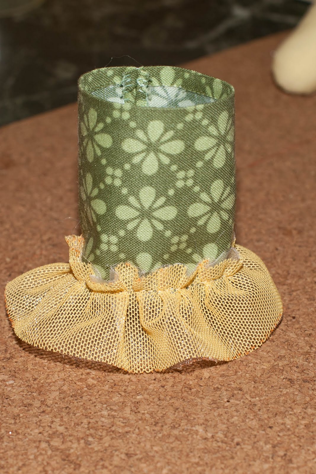 Я подумала, что девочкам ( а наша слоняшка именно такого пола) ходить голышом, да еще и весной-комильфо и решила сшить простенькое платьеце, в таком винтажном стиле. Для этого, берем метр и замеряем окружность наших "бедр", т.е. самой объемной части, прибавляем еще 1 сантиметр, что б можно было одеть (платье не пышное)-это и будет наша ширина. Далее раскраиваем прямоугольник заданной ширины и нужной вам длины. У меня получилось 13 на 5 см. Не забываем оставлять припуски на швы.