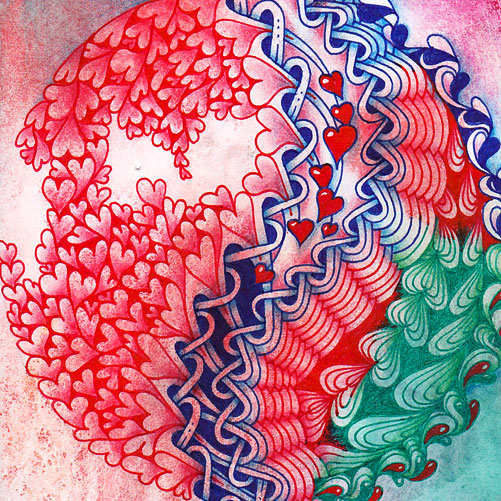 Размер квадратика: 9х9 см. Материалы: гелевая ручка, карандаш, акварель.