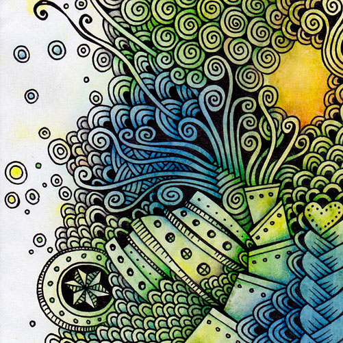 Размер квадратика: 9х9 см. Материалы: гелевая ручка, карандаш, акварельные пятна.