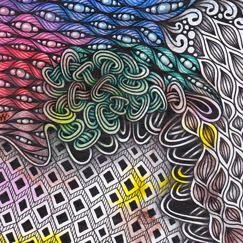 И снова плитка zentangle, основанная на акварельных пятнах.