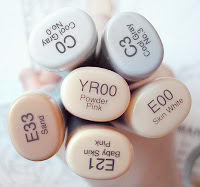 Эти маркеры я буду использовать для раскраски кожи – E00, YR00, E21, E33,C0, C3. Я всегда использую такую палитру для бледной кожи. Конечно, идеально было бы заиметь Е000 и Е0000, но, к сожалению, у меня нет такой возможности Т__Т
