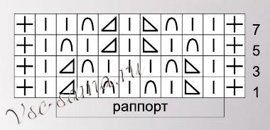 На схеме указаны только лицевые ряды, изнаночные ряды вязать изнаночными.