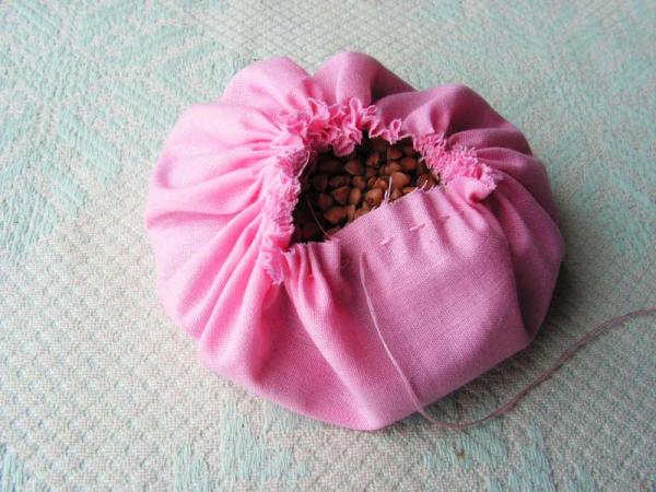 Сколько сыпать зерна – пробуйте рукой на ощупь. (Первые два-три дня вы ее вообще будет постоянно тискать, это я вам обещаю.) Имейте в виду: если мало зерна, куколка «расплывется» по столу, если много – трудно будет вставить голову, и в руке не будет ощущения пластичности.