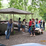 Очень веселым получился конкурс "Прохождения минного поля". На самом деле пройти со связанными ногами в длинной цепи совсем не так просто как кажется. Если один упал, то тянет за собой соседних, а последние не видят, что начало цепи завалилось и, естественно, напирают. Было очень весело.