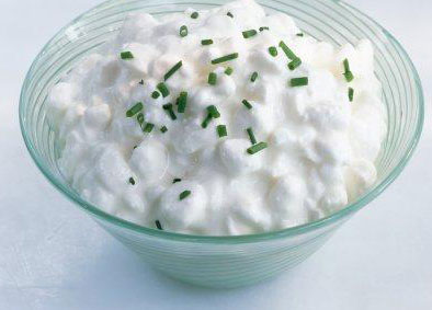 Нежирный творог (жирность не более 8%). Можно посыпать его лимонной цедрой.