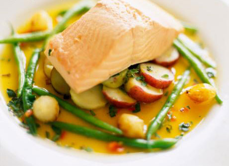 1. Отварная морская рыба (камбала, судак, лосось) с гарниром из цветной капусты или брокколи.