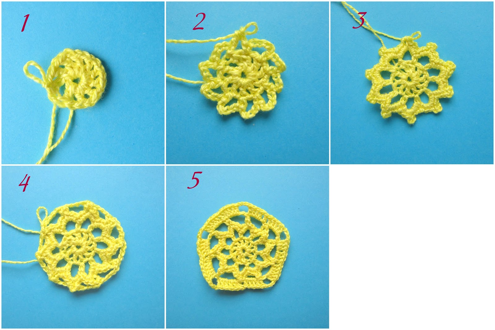 1ряд: 4 возд. петли, столбик с накидом провязываем в цепочку.