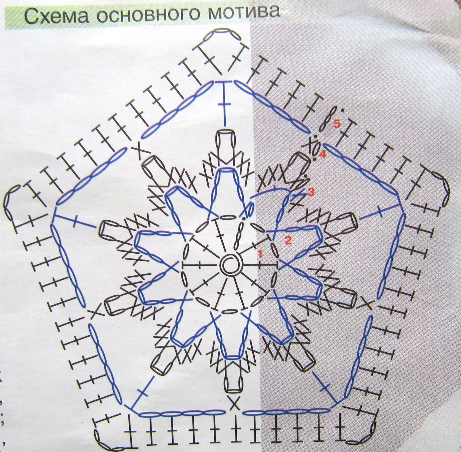 5 столбиков с накидом в 4 возд петли 4-го ряда