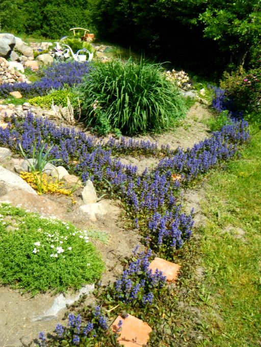 И, поскольку плодовитость живучки уникальна, я стала рассаживать ее по краям газонов .