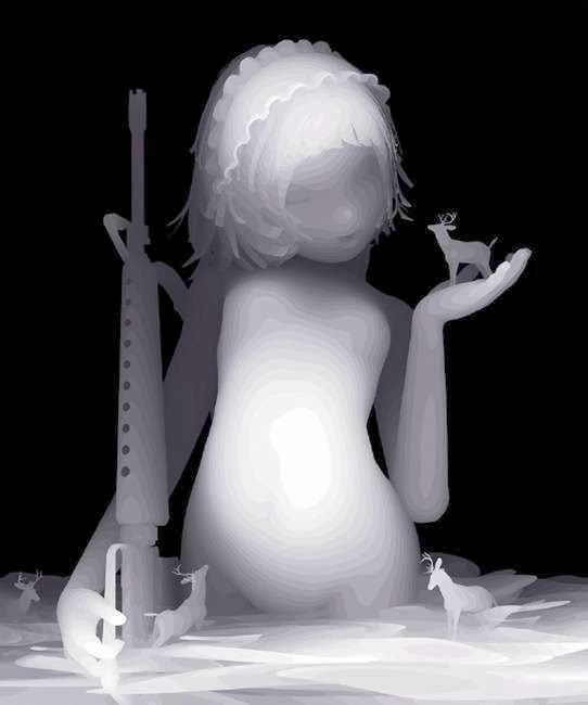 Используя многочисленные, почти прозрачные слои гуаши художник создает картины, которые имитируют 3D технологии отображения объема. Издалека кажется, что это цифровая этвопись. Но он полностью рисует эти голограммы от руки, давая своим зрителям возможность заглянуть в иллюзорный мир, населенный призрачными фигурами Лолит, насладиться изысканным уровнем детализации. Кто-то, наверное, подумает, что его любовь к подобному рисованию носит маниакальный характер. Кто-то скажет, что его мир выходит из сказки, но эта сказка, якобы не похожа на другие.