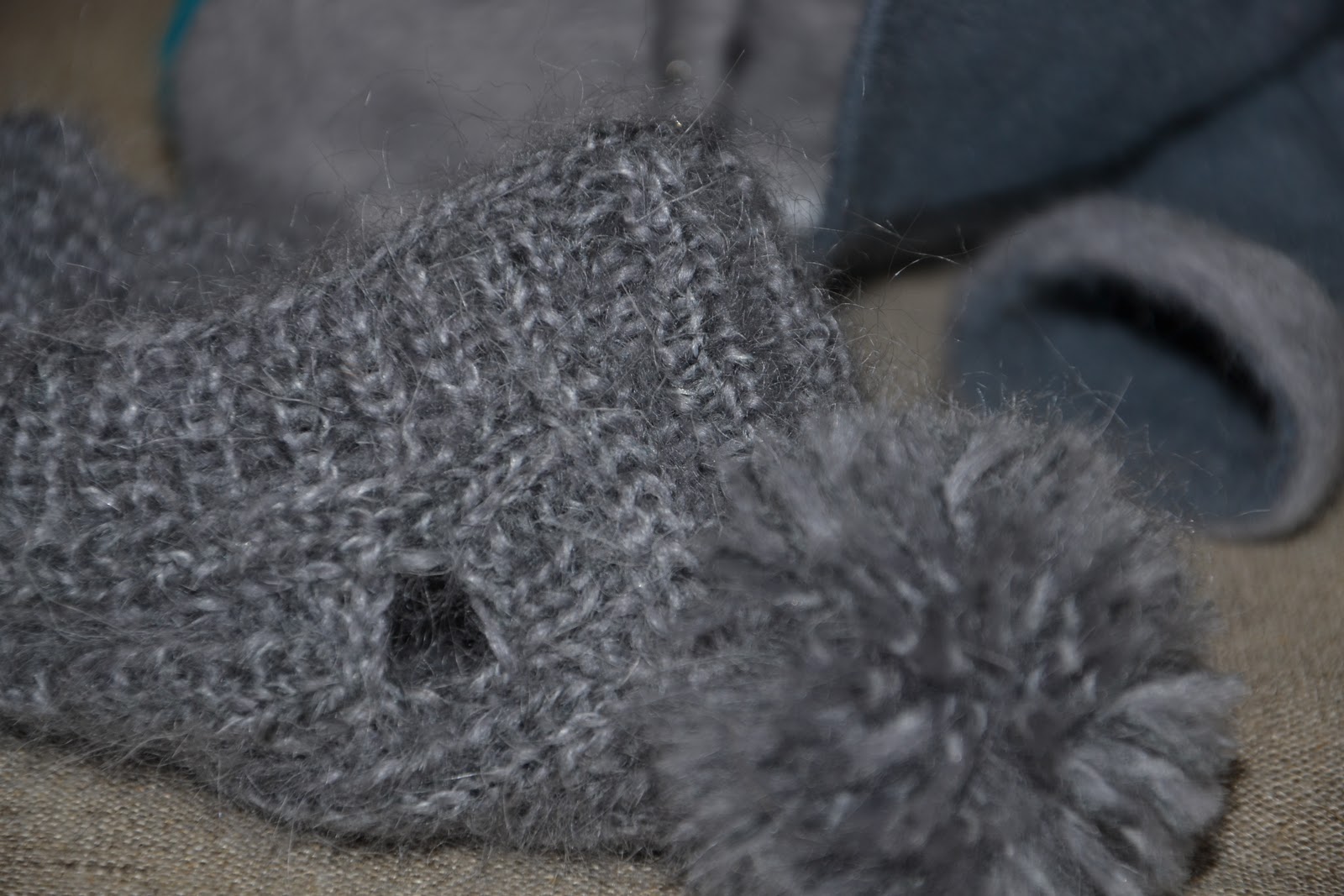 Шапка-шлем связана по принципу пятки носка. Обязательно дырочки для ушков!