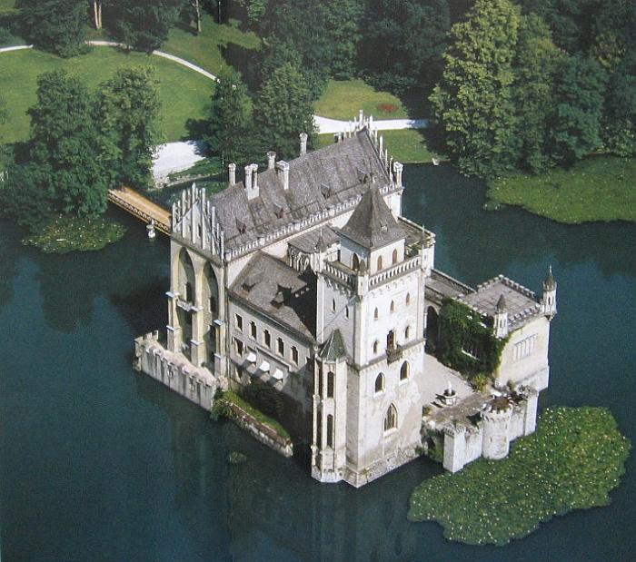Внутренний интерьер оформили в английском стиле. Залы были расписаны фресками работы Грюнведеля. В капелле замка сохранился настоящий готический алтарь. После смерти графа замок перешёл его наследнице Софии. При новых владельцах здесь появилась скульптура работы Людвига Шванталера «Нимфа на дельфине».
