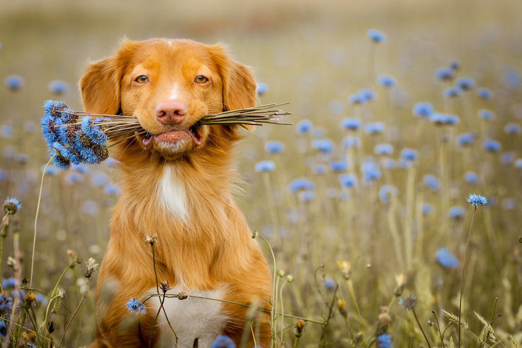 Цветы и собака