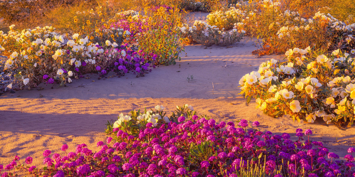 [800x]На границе США и Мексики в калифорнийской пустыне расположен второй по величине национальный парк в США - Анза Боррего (Anza-Borrego Desert State Park). Его территория занимает 2400 квадратных километров. Большую часть времени это безжизненная пустыня, но после зимнего дождливого сезона, начиная с марта, вся пустыня покрывается множеством цветов. Посмотреть на это событие приезжают люди со всей Америки. Центр обслуживания туристов находится в Боррего Спрингс, единственном значимом городке парка.