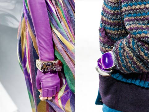 Невозможно представить себе ювелирную моду без колец, которые в этом году также отличаются своей массивностью. Так, бренд Missoni предложил поклонницам этого аксессуара, носить кольца прямо поверх кожаных перчаток, полностью закрывающих всю руку. Классические кольца представили ювелиры Bottega Veneta.