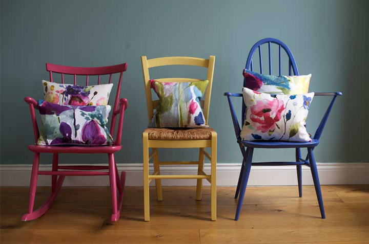 Решив разнообразить домашнее убранство цветочным принтом, следует учитывать общий стиль, в котором выполнен весь интерьер жилища. Россыпь мелких цветочков ассоциируется с деревенским стилем кантри. Особенно актуально в такой обстановке изображение растений в виде народной росписи. Такие узоры хорошо сочетаются с деревянной мебелью.