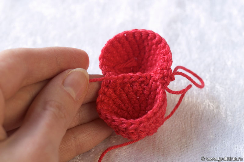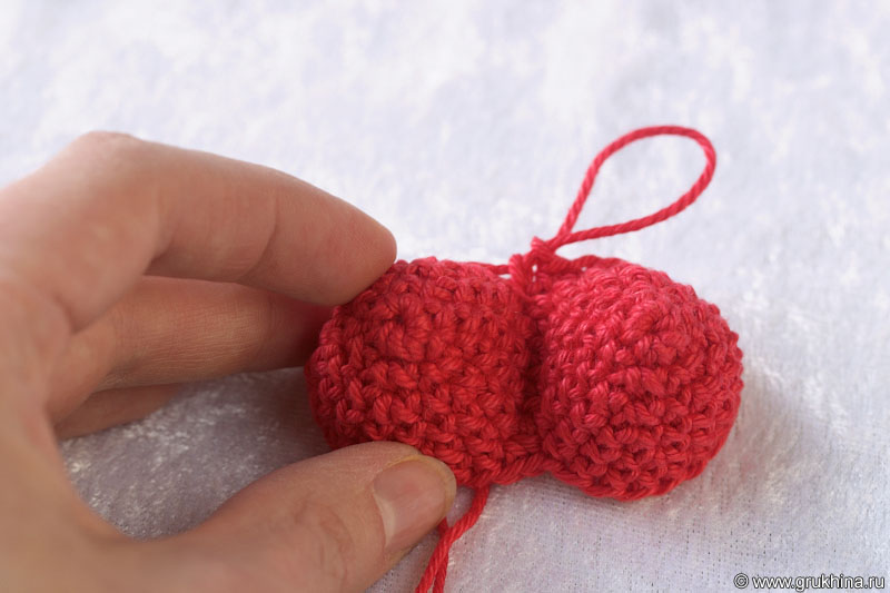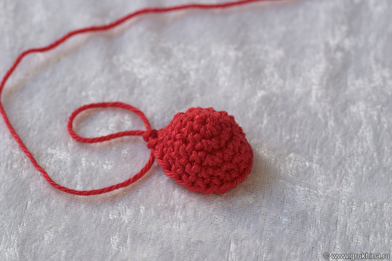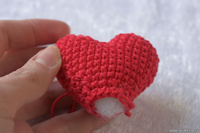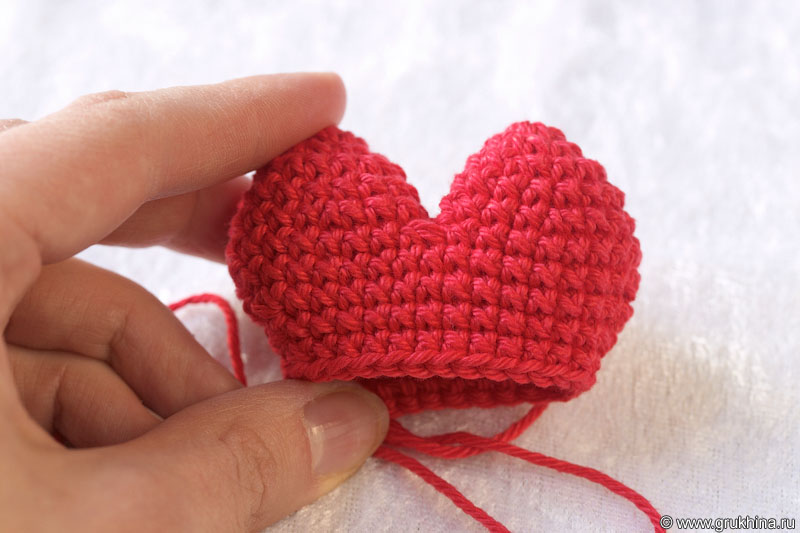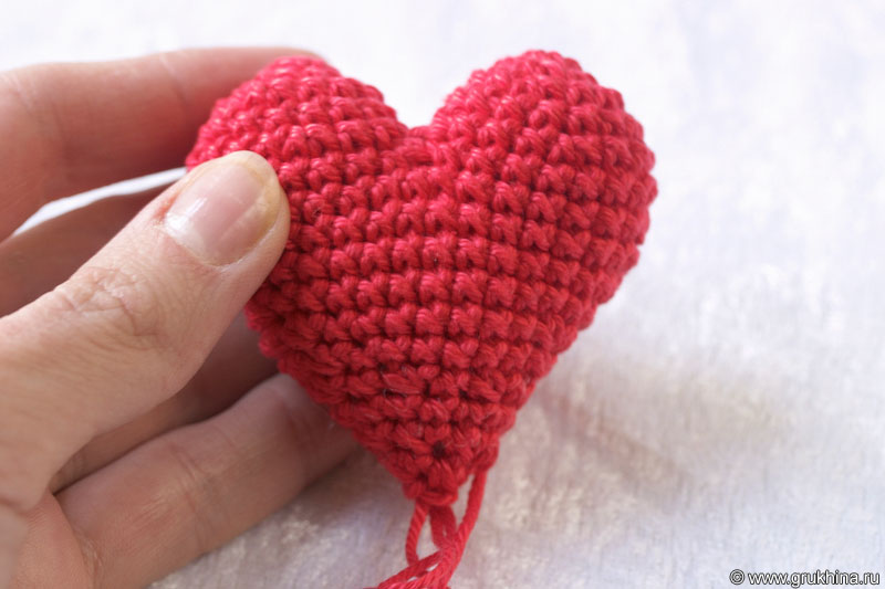Отрезать нить и заправить конец внутрь сердечка.