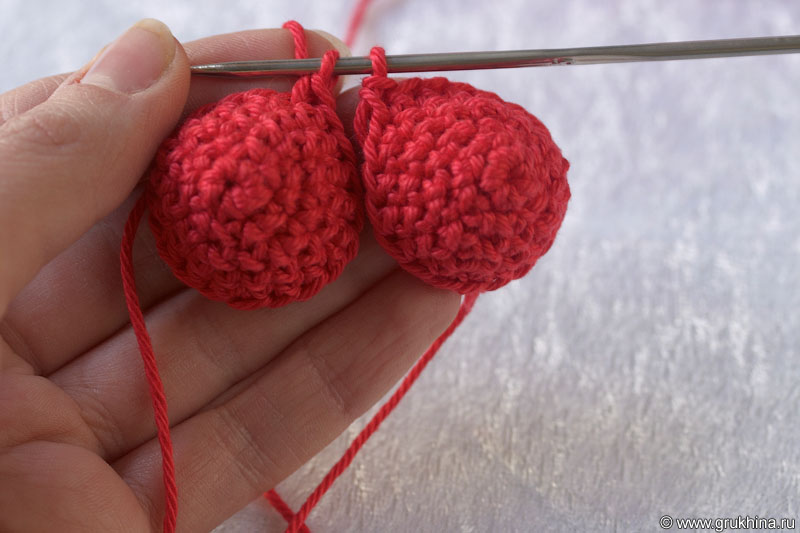 - немного хлопковой пряжи красного цвета (я использовала Gjestal Bomull Sport, 100 % хлопок, 50 гр.=100 м.);