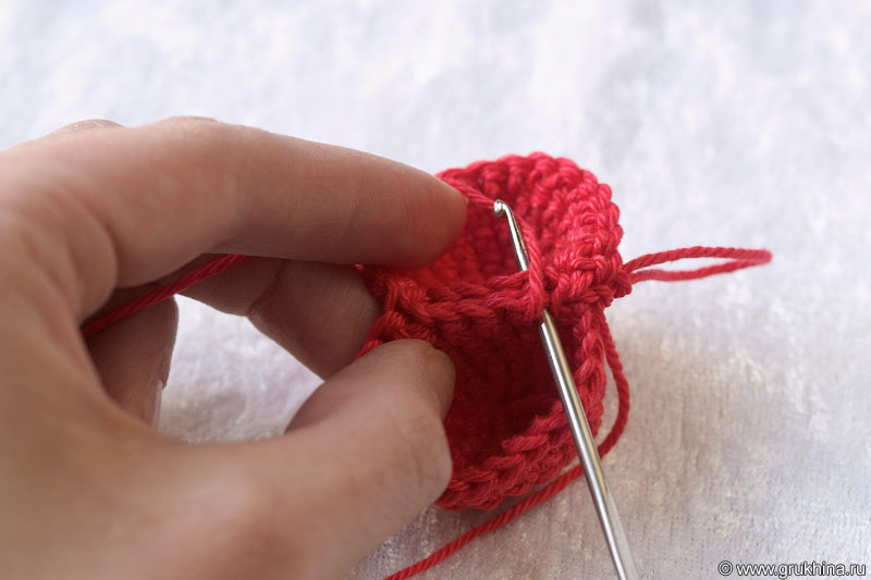 7. Закончить сердечко, связав следующим образом: