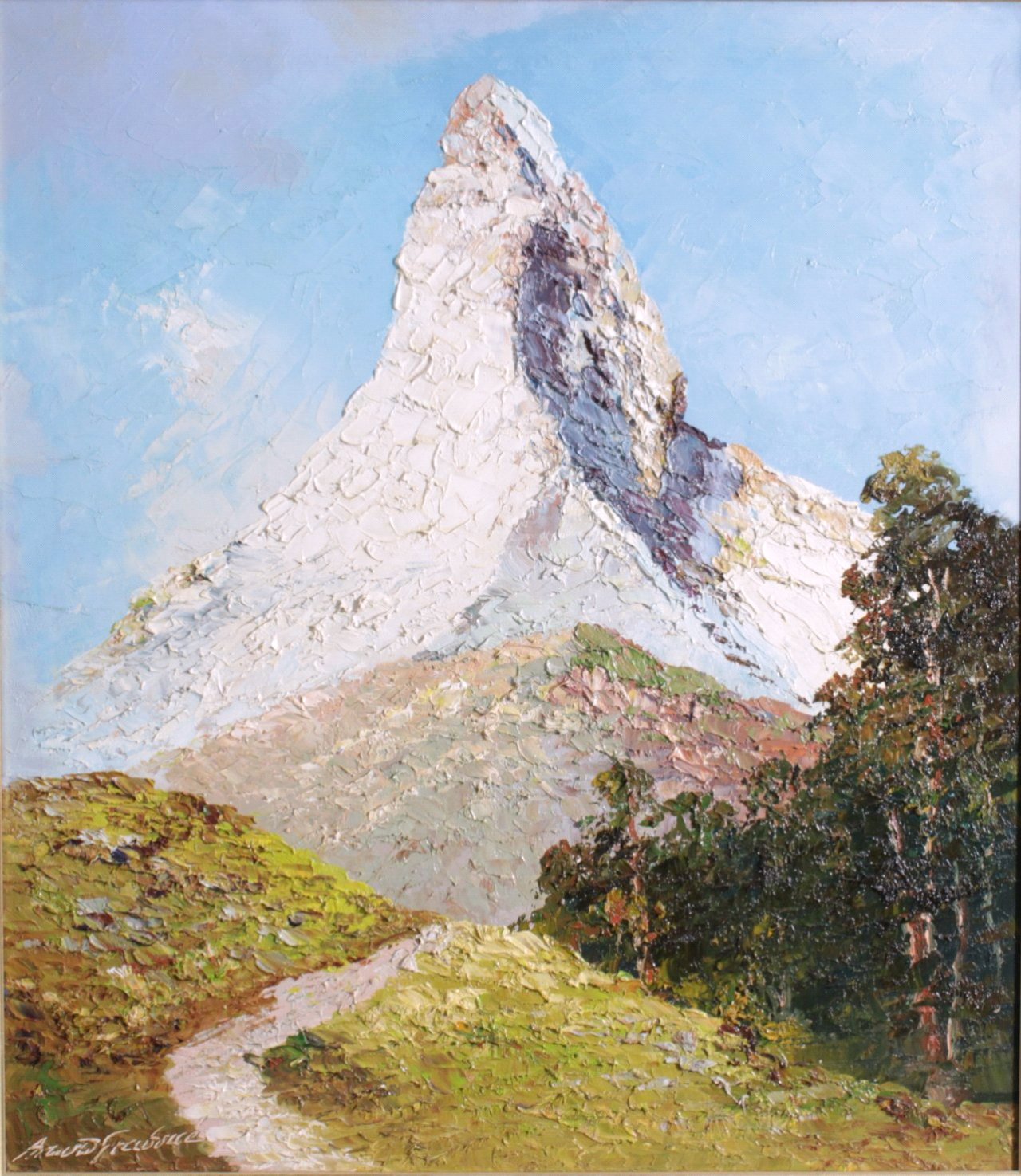 Эту вершину писали почти все художники-пейзажисты Европы, Arnold-Grabone - неоднократно, она одан из труднопокоряемых вершин, её покорили последней в веренице высот Альп. Маттерхорн ( Matterhorn) - вершина в Пеннинских Альпах на границе Швейцарии в кантоне Вале и Италии в провинции Валле-д’Аоста Высота вершины составляет 4478 метров над уровнем моря. Маттерхорн имеет примечательную четырёхгранную пирамидальную форму со стенами, обращёнными по сторонам света.