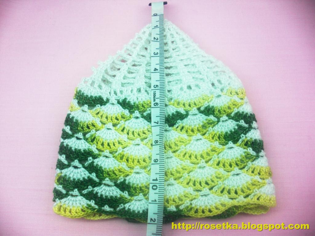 14-31р. Вязание боковинок панамки узором «Ракушки», чередуя через один ряд цвета пряжи.