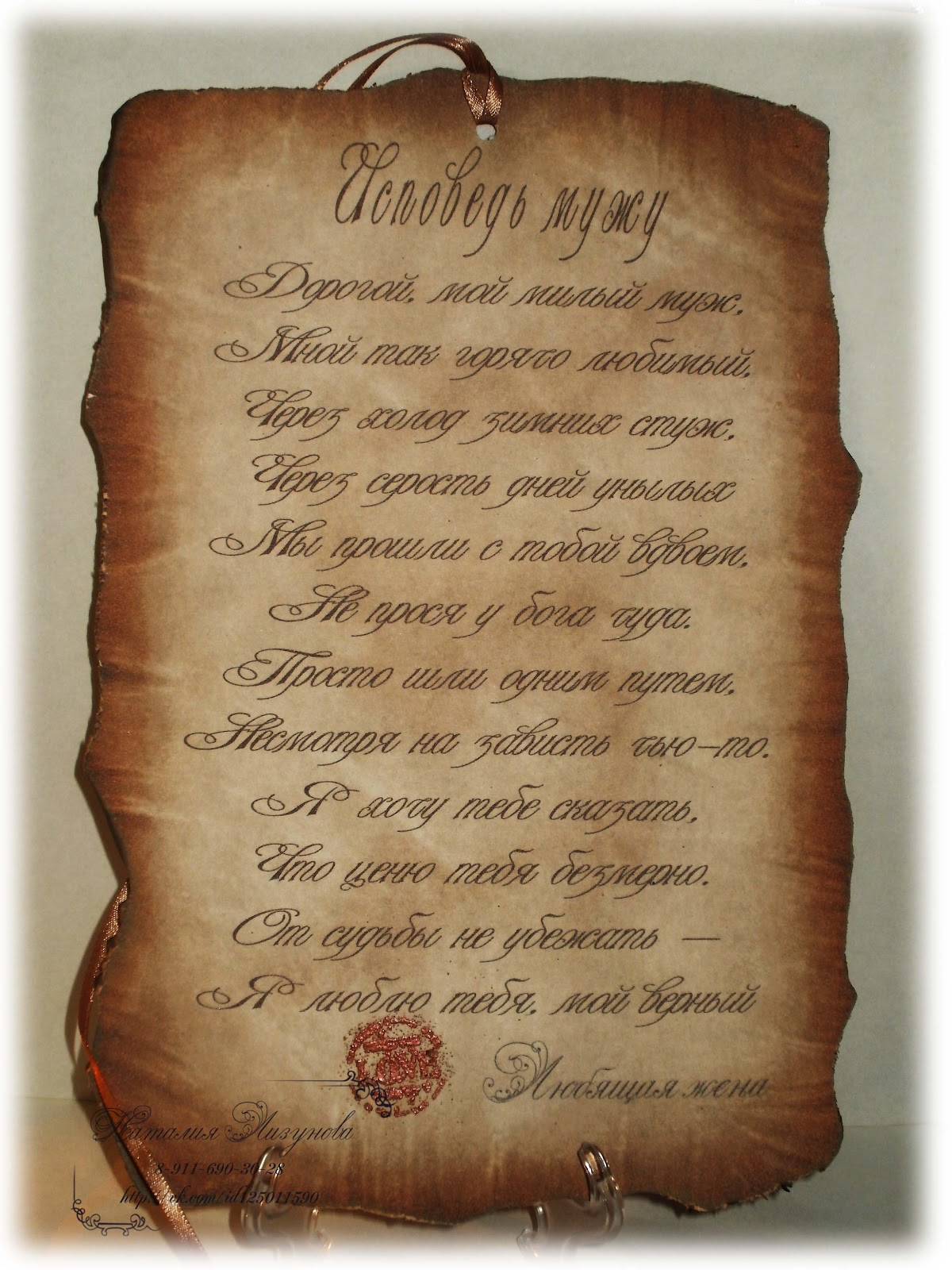 А вот такую "Исповедь мужу" я сделала по просьбе девушки, к которой завтра еду в гости на булочки с корицей)))