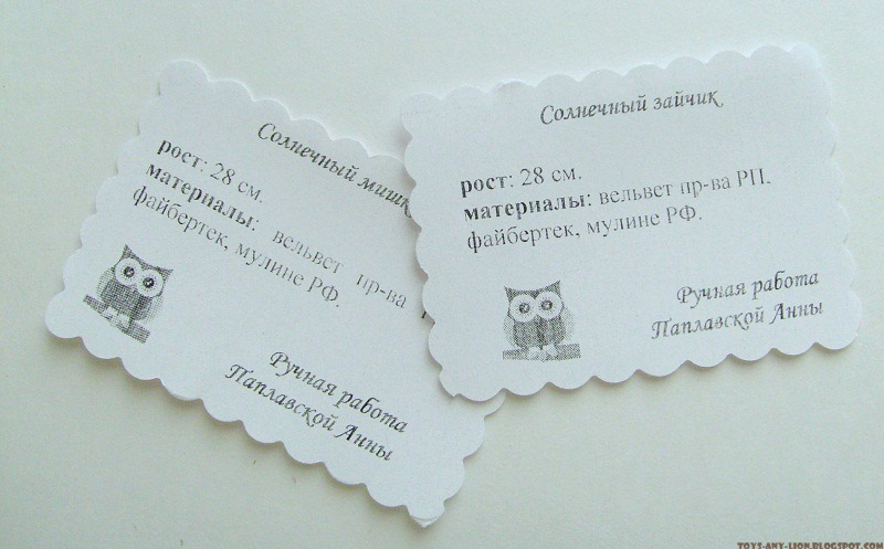 babusja Оригинальное сообщениеМК: Бирка+ценник для игрушки