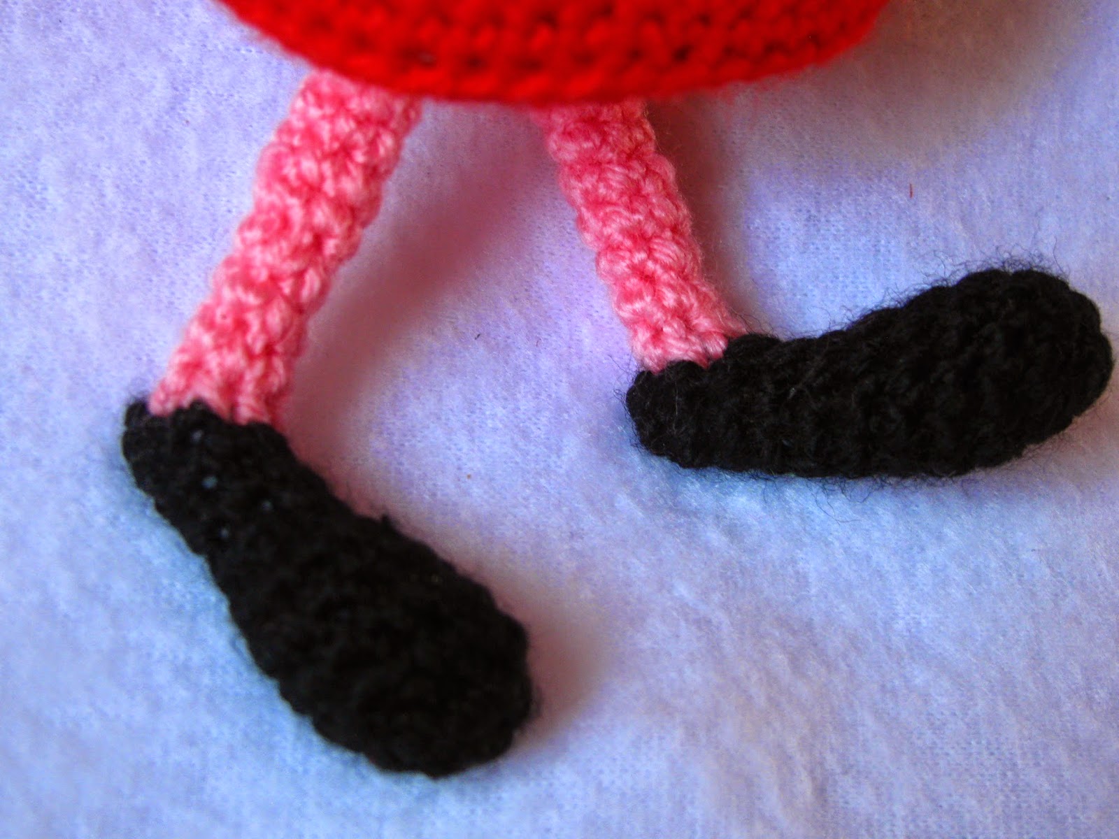 Набираем прям по ступне 6 столбиков(или можно отдельно связать , а потом пришить)к ступне