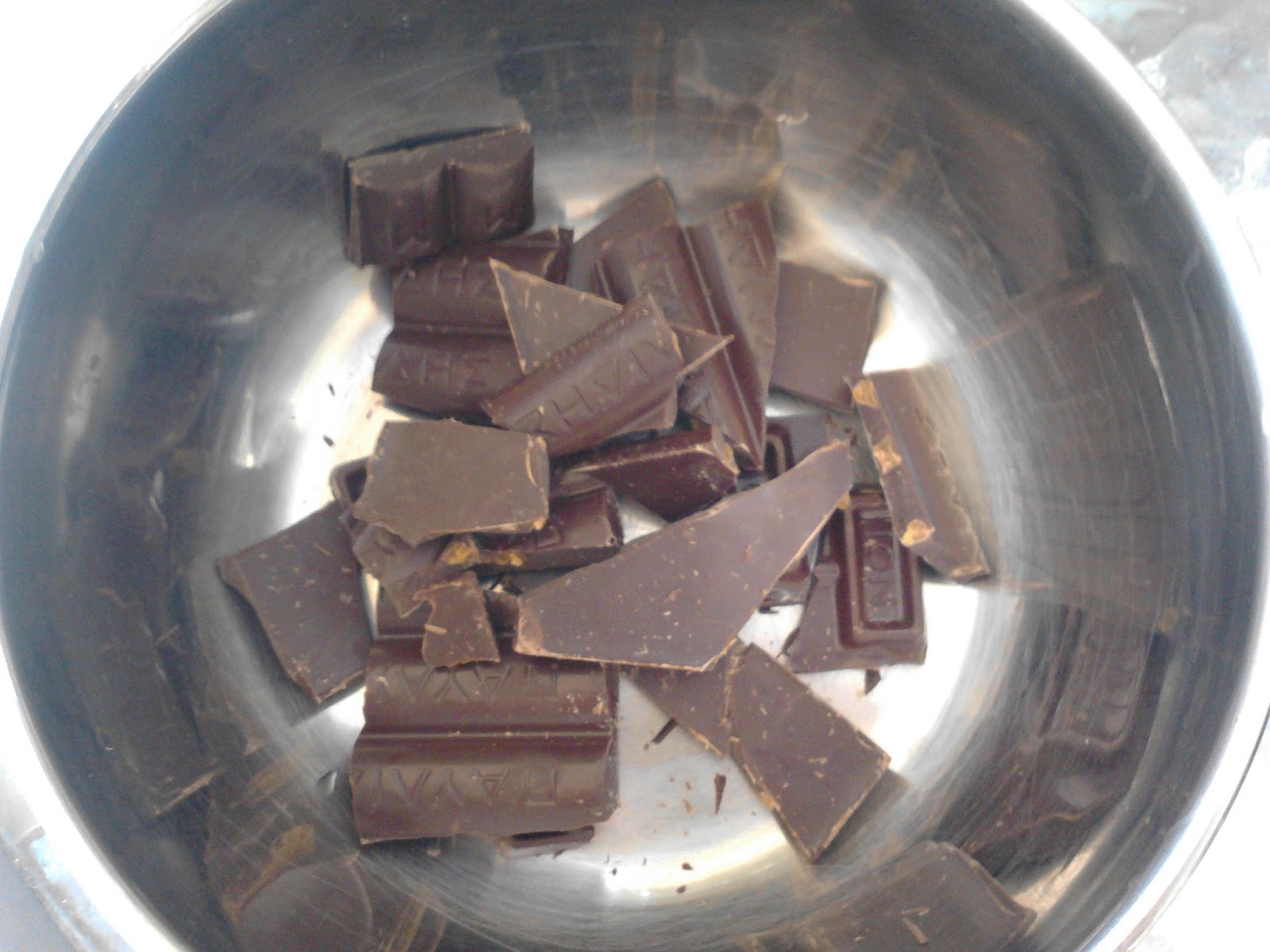 Шоколад поломать на кусочки, поставить маленький огонь. Как только шоколад начнет таять, добавляем молоко и перемешиваем. Как только смесь начнет становится похожей на помадку, но более жидкую, снимаем с огня.