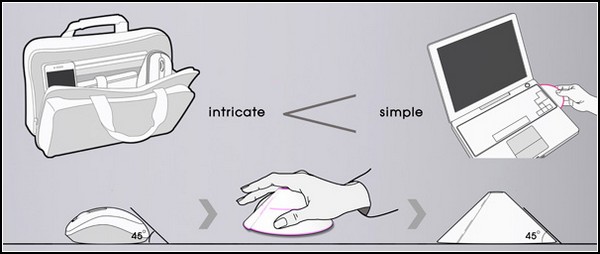 Ноутбуки, нетбуки и планшеты научили нас экономить пространство. Особенно, пространство наших сумок, которые бывают настолько маленькими, что в них некуда в добавок к ноутбуку запихнуть и компьютерную мышку. Но дизайнер