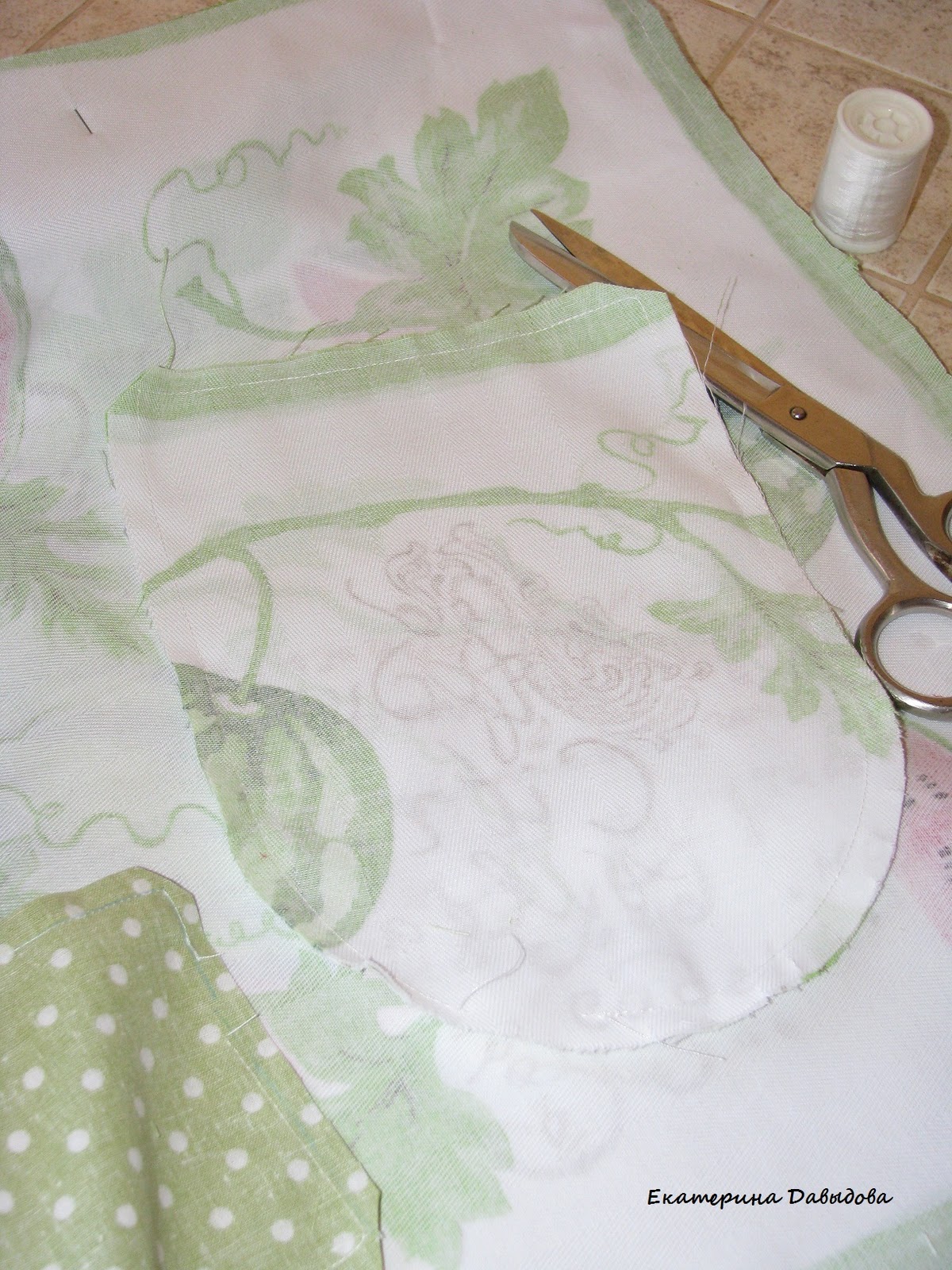 прошиваем, отрезаем уголки, в закругленных местах надрезаем ткань