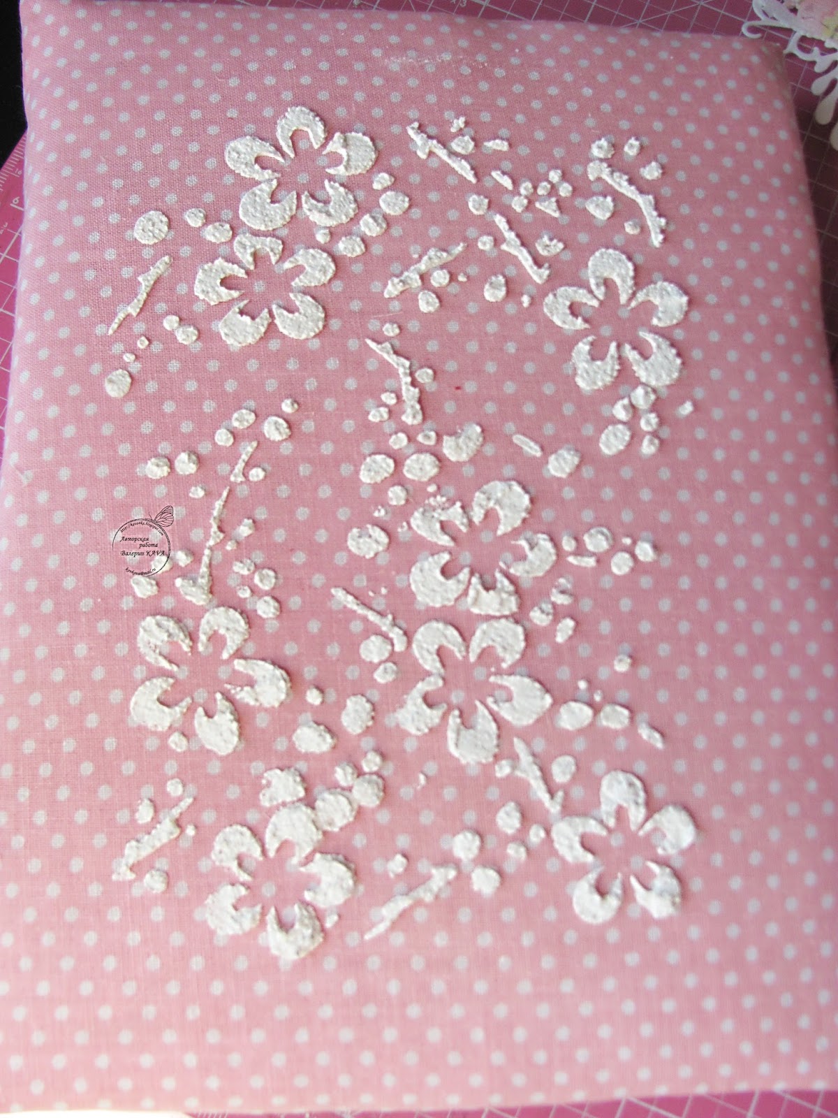 с помощью трафарета и текстурной пасты сделала красоту на лицевой стороне